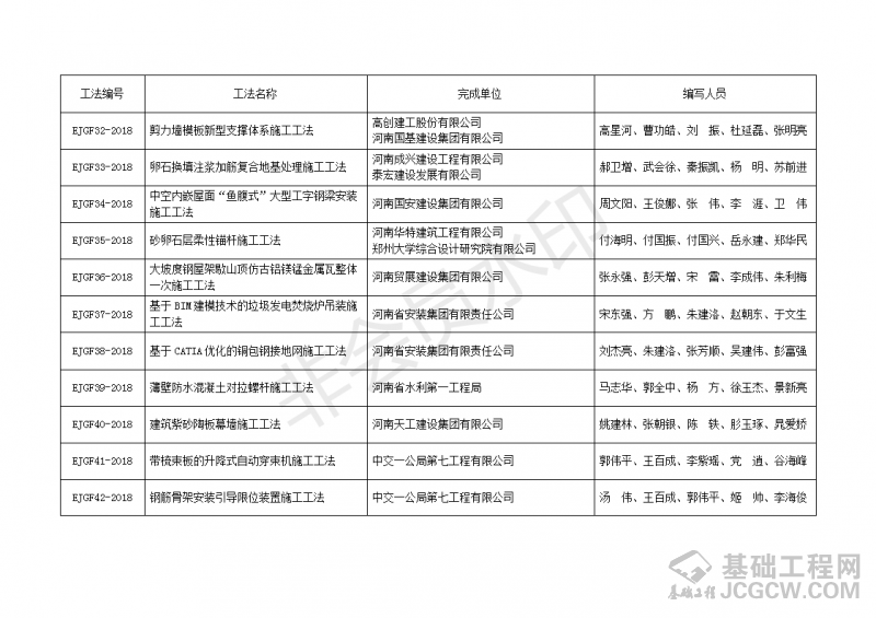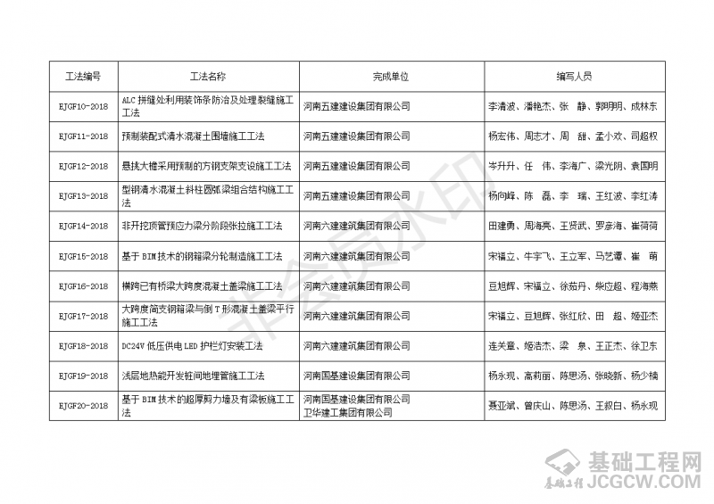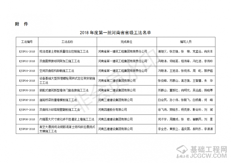 河南省建筑业协会关于公布2018年度第一批河南省省级工法的通知