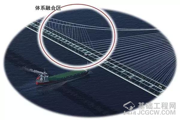 四索面拉索和吊索在交叉吊索区自然转化为双索面拉索和吊索,其间两种体系平顺融合,有效解决了体系交界区结构内力间断问题,同时也解决了分体梁受横向受力控制,经济指标差的问题。