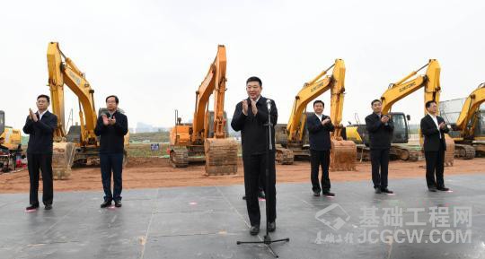 图为武汉市长周先旺出席开工仪式
