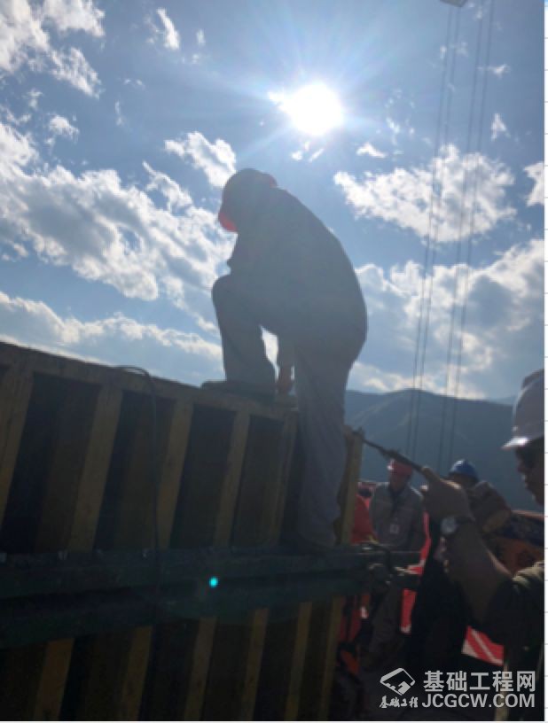 而环环的右手边,施工者背靠蓝天淡定地指挥着浇筑工作。