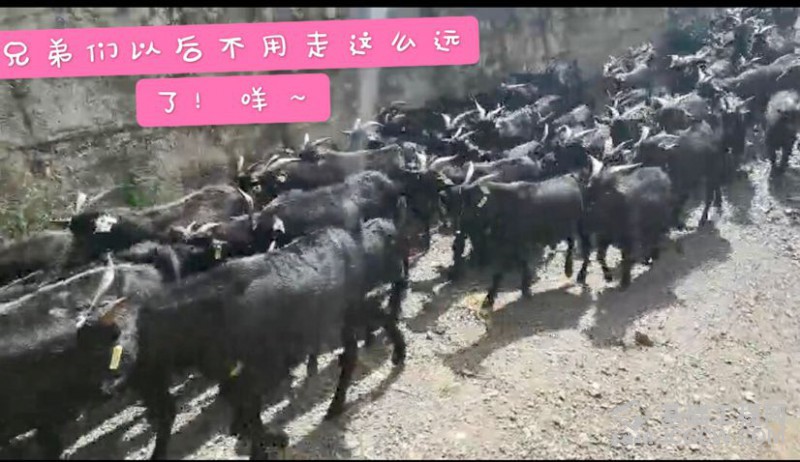 环环在路上曾被一大群黑山羊包围,因为道路狭窄,只好停车礼让“行人”。