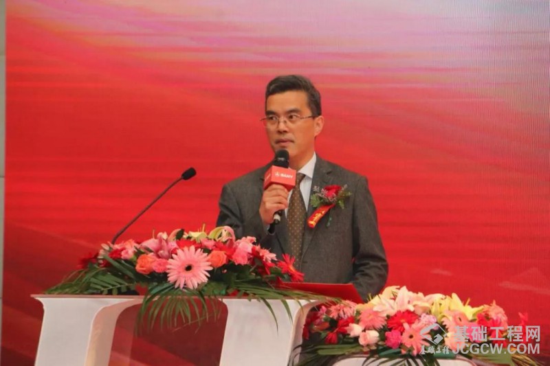 在一段激昂的歌声之后活动正式开始。中国工程机械工业协会桩工机械分会秘书长黄志明先生、三一重工副总经理、北京三一智造总经理熊逸群先生分别致辞。
