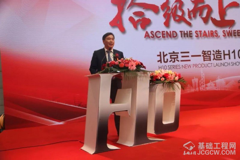 黄秘书长在致辞中讲到:现在中国经济正处于由“数量增长型”向“质量发展型”转型升级的关键时期,创新驱动的价值及其重要性越来越凸显,创新驱动已成为国家、企业能否进入更高层次发展阶段的金钥匙。而北京三一以持续不断的研发投入、领先的精益制造水平,铸就了一代又一代高品质的桩工机械产品,得到了一大批客户朋友的信赖、行业同仁的尊重以及市场的丰厚回报。他在发言中特别强调了北京三一C10系列的推出,在行业内产生了很大的轰动效应,而更重要的是,得到了广大客户朋友的认可和好评。而今天所发布的H10系列旋挖钻机,专门配套使用了重载型旋挖专用底盘,从施工能力、施工效率、整机稳定性等多方面,都比上一代旋挖钻机有了长足的进步。H10系列旋挖钻机必将再创传奇,为广大客户朋友再铸施工利器,也为中国桩工机械行业的技术进步起到强大的推动作用!