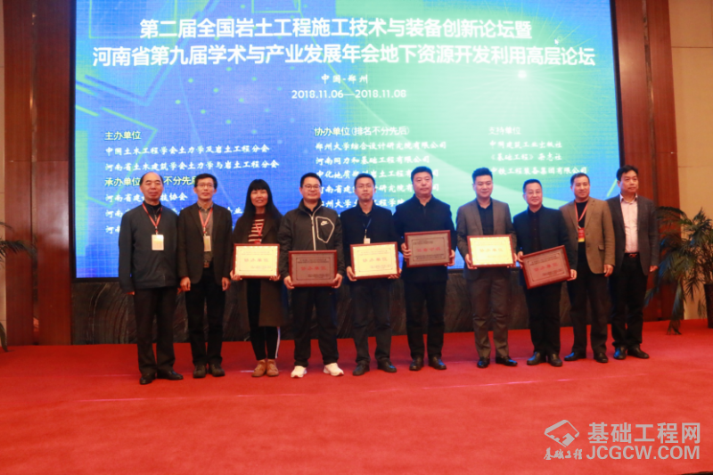 《基础工程》杂志社、基础工程网讯 由中国土木工程学会土力学及岩土工程分会、河南省土木工程学会土力学及岩土工程分会主办,河南省建设科技协会、河南省土木建筑学会工程勘察专业委员会承办,河南省工程勘察设计行业协会勘察专业委员会承办,郑州大学综合设计研究院有限公司、河南同力和基础工程有限公司、中化地质郑州岩土工程有限公司、河南省建筑设计研究院有限公司、郑州大学土木工程学院、河南理工大学土木工程学院、河南省建设基础工程有限公司、中部城市建设有限公司协办的“第二届全国岩土工程施工技术与装备创新论坛”于今日(11月8日)在郑州胜利闭幕。