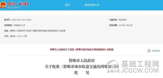 你委《关于提请批准〈邯郸市城市轨道交通线网规划〉的请示》(邯发改呈〔2018〕150号)收悉。经研究,现批复如下: