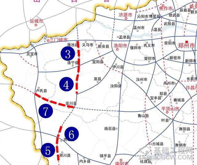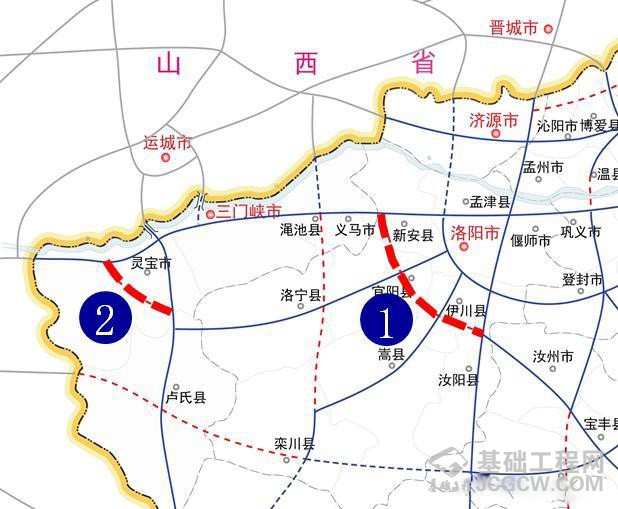 ——连霍二广高速联络线,经洛阳市新安县、宜阳县、伊川县,全长82公里,总投资96亿元。