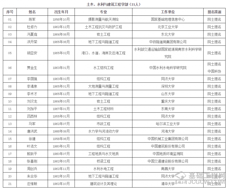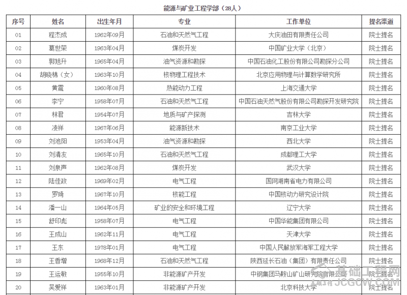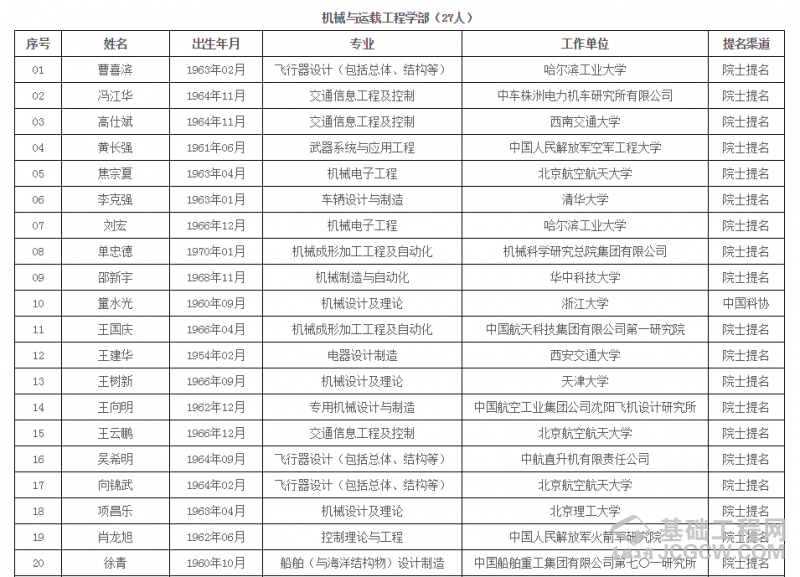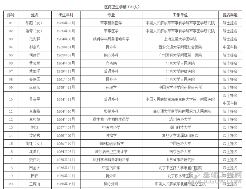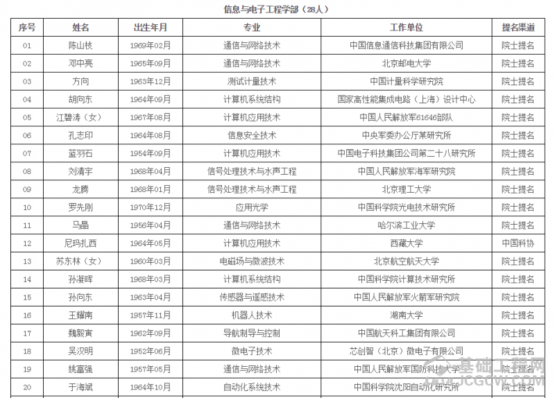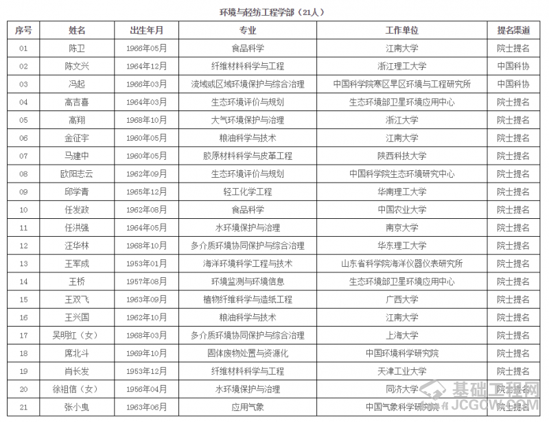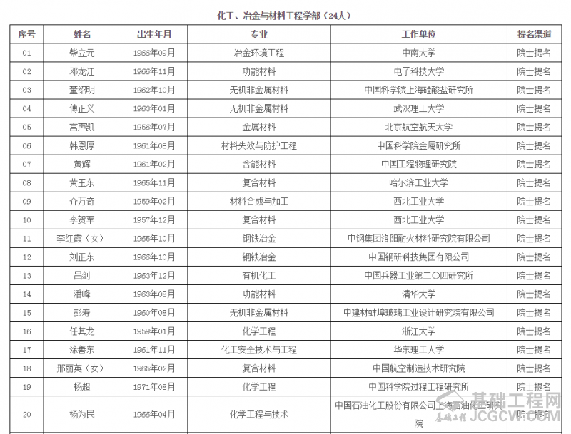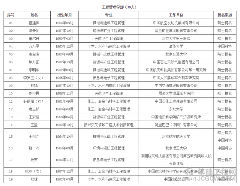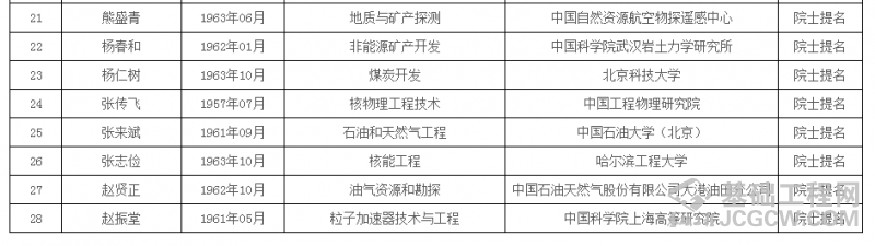 中国工程院2019年院士增选进入第二轮评审的候选人名单 (按照候选人姓名拼音排序)