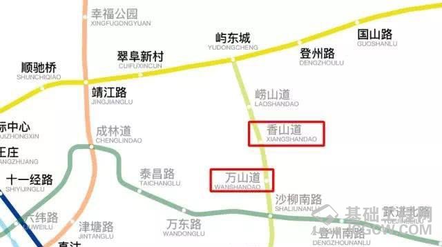 天津地铁10号线的万山道站、香山道站的位置如下所示。