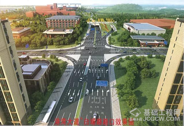 该工程南起港湾大道-大学路交叉口,向北以路基型式走行,接着采用隧道型式依次下穿中山大学横二路和中轴线,在白埔路以南接地,与白埔路平面相交。