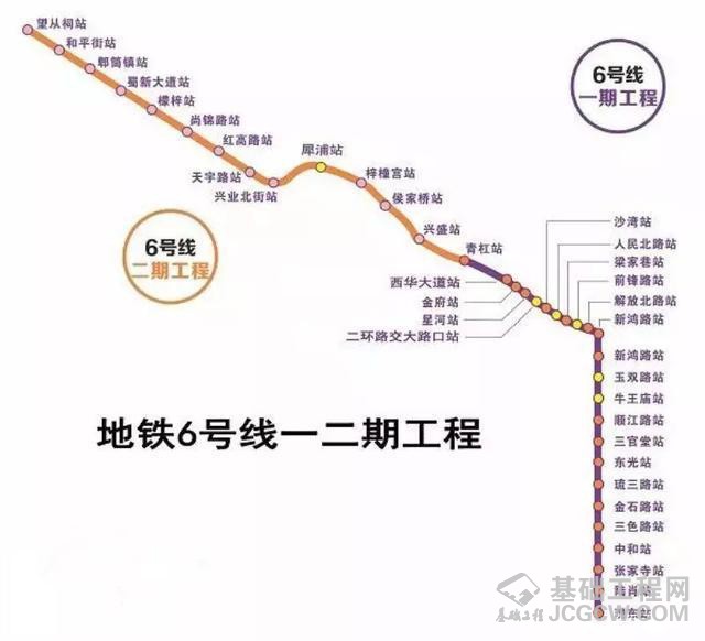 6号线一二期工程为成都轨道交通第二期建设规划项目,北起成都市郫都区,途径高新西区、金牛区、成华区、锦江区,南至高新区,全长47.4公里,共设车站38座,是成都地铁开建以来最长全地下线路,也是贯通成都主城区南北向的地铁骨干线路和加速成网的关键线路,于2016年7月正式开工,预计2020年底前开通试运营。
