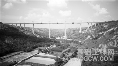 天宁沟特大桥位于甘肃省东部庆阳市宁县与正宁县交界处,大桥全长1138.08米,最大桩径2.5米、最深桩长96米,最大承台5046立方米,最大连续刚构跨径180米,最大薄壁空心墩墩高163米,其桩长、跨径、墩高、大体积承台在甘肃省居第一。