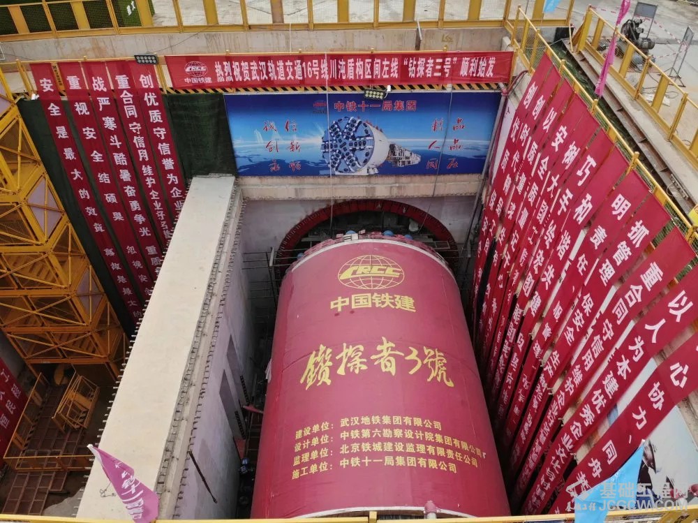 武汉市轨道交通十六号线川江池站~沌口站区间“钻探者3号”盾构机正式始发。