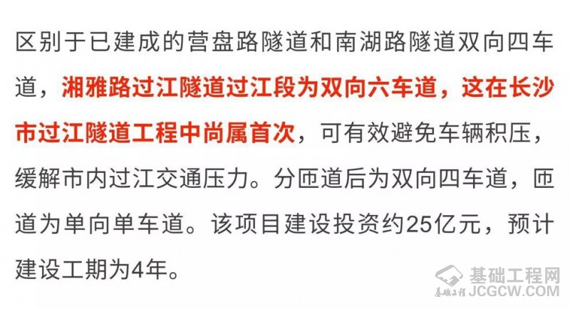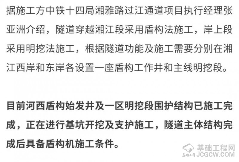 湘雅路过江隧道进入主体施工阶段 预计2023年通车
