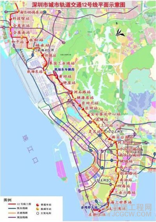 深圳地铁12号线全线沿主干道地下敷设,共设车站33座,全部为地下站,其中换乘站18座、正线区间32个、出入场线、出入段线区间各一个、12/5联络线区间一个,新建机场东车辆段、赤湾停车场及创业路变电所、灵芝主变电所。项目于2018年初开工,计划于2022年底开通试运营。