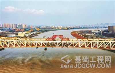 14日上午,三官堂大桥完成了主桥最后一节超大节段钢结构焊接作业,大桥顺利合龙。