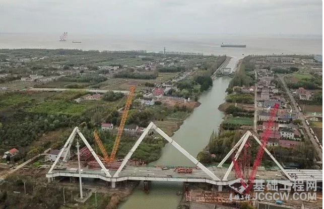 崇明生态大道东平河桥“山影斜晖”造型初现