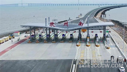 胶州连接线是青岛胶州湾大桥的配套工程,总投资9.18亿元,由胶州城投投资、山东高速代建实施、山东路桥承建的海上特大桥梁工程,起于上合示范区生态大道,顺接胶州湾大桥大沽河航道桥西侧,全长5749米,桥宽18.5米,双向4车道设计。