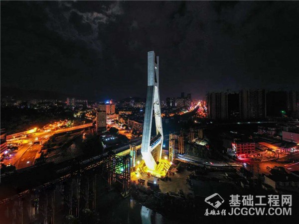 10日凌晨,高约121米、重约1.6万吨的宝石型扁平状大桥主塔以约每分钟一度的速度,逆时针进行原地旋转。1小时20分钟后,主塔完成69度转体,成功实现了“独塔单转”。