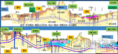优化隧道埋深后,区间覆岩厚度均值将由原10.3米增加至15.2米,II、III级围岩占有率由45.7%提高至60.7%(不含盾构),机械化掘进区间总长度约23.018千米,占全线区间工法的90.1%,拟采用10台TBM、23台盾构机施工。该优化方案降低了暗挖施工的安全风险及后期运营振动噪声的环境问题,降低了火工品对建设工期的制约和爆破振动扰民问题。同时,对青岛地铁后续线路建设在研究车站与区间的合理埋深、提升隧道掘进机械化率、对解决穿越地质复杂与下穿建筑物安全风险高和施工难度大等问题具有重要的借鉴意义和指导作用。