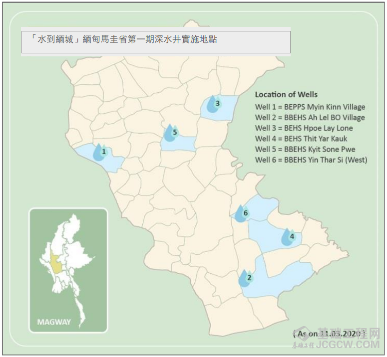 为配合愿景「善者无疆 创建大同世界」,苗圃行动发起了「水到缅城-建造太阳能深潜泵水井项目」,第一期为缅甸马圭省 8 所位于偏远地区学校开凿深水井,安装太阳能板及直径 100 毫米的太阳能深潜水泵,让学校及当地社区解决食用水问题。