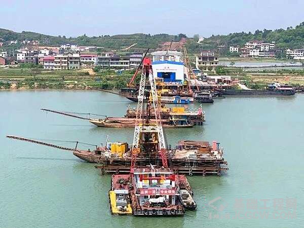 石潭湘江特大桥水上作业场景。