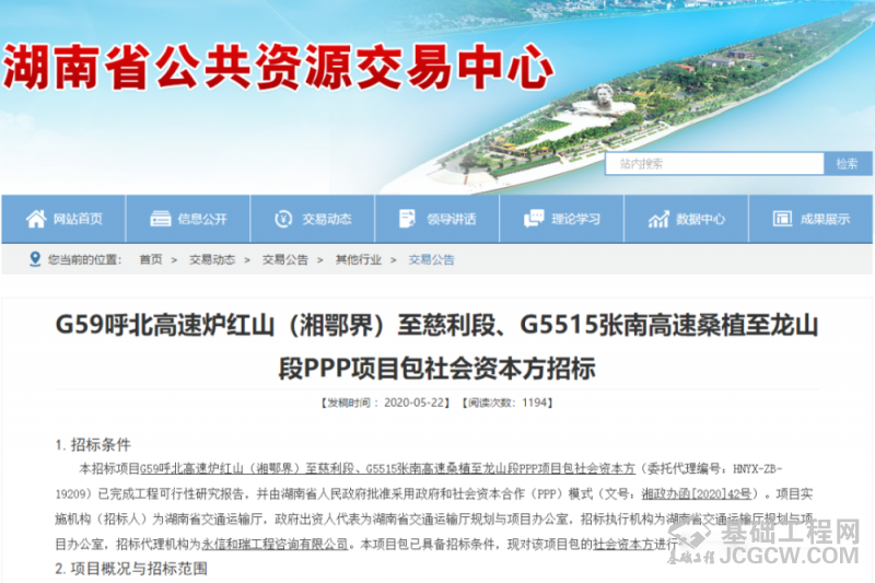 G59呼北高速炉红山(湘鄂界)至慈利段、G5515张南高速桑植至龙山段PPP项目包社会资本方招标