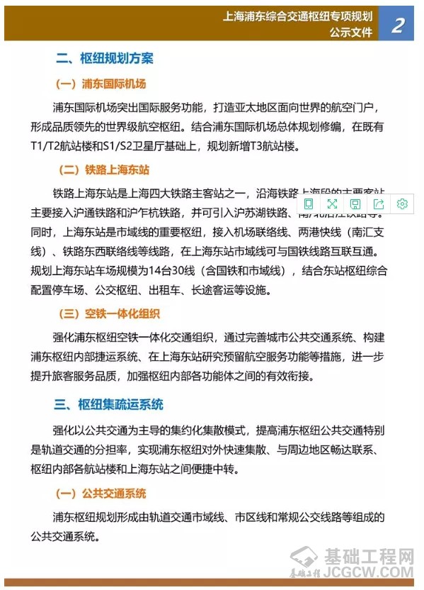 《上海浦东综合交通枢纽专项规划》具体批复如下: