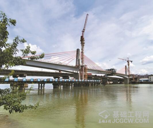 佛山地铁三号线上唯一一座矮塔斜拉桥——顺德水道大桥顺利完成中跨合龙。