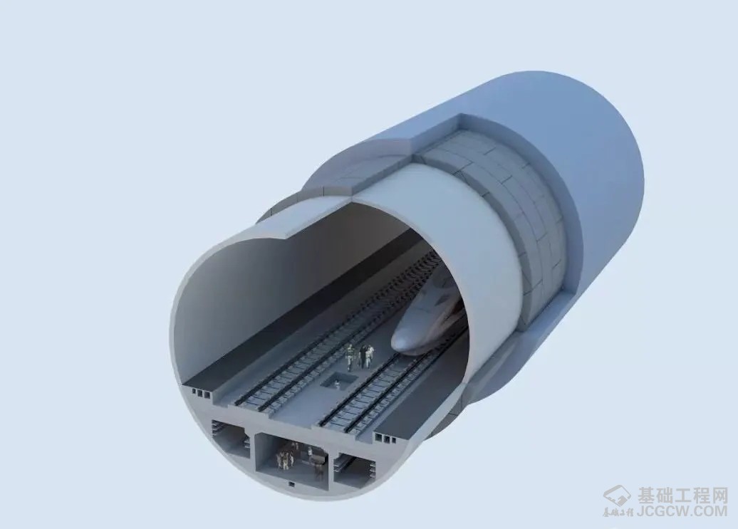 隧道设计为单洞双线,防灾检修通道利用双线轨道之间下方的空间,设置疏散与检修廊道,是铁路首次采用。