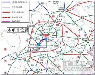 从建设内容上看,新建道路全线长约25.502千米,道路等级为高速公路。其中,成都三环至主线收费站段长约3.291千米,双向六车道,设计时速80千米/小时,路基宽度28.5米。主线收费站至成都第二绕城高速段长约22.211千米,双向八车道,设计时速120千米/小时,主线收费站至正公路互通段运营车速80千米/小时,路基宽度36.5米~42米)。同时,设6座桥梁、3座涵洞、1座隧道,设置5处互通式立交。另外,绕城高速局部改线长约2.635千米,道路等级为高速公路,双向六车道,设计时速100千米/小时,路基宽度34.5米,采用全路基。