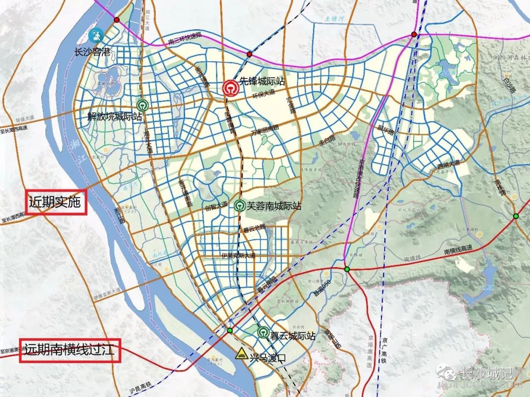具体线位位于万家丽路西延线,连接河东暮云片区及湘江新区大王山片区。