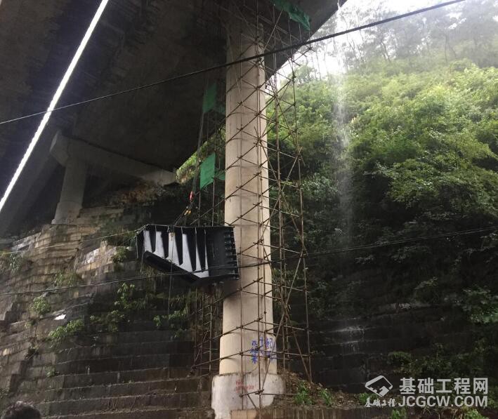 为积极响应浙江省交通厅关于独柱墩桥梁加固治理工作要求,确保桥梁结构稳定,保障行车安全,近日,衢黄管理处采用新方法对城底线1号桥第2联加固治理,在原有的左幅7-8号、右幅6-7号独柱墩墩顶增设钢套箍,加装钢盖梁,在钢盖梁上新增盆式支座,并在高墩柱远离道路一侧增设直径120cm桩基,并增设承台,通过抱箍构造将承台与原独柱墩链接,进行桥墩偏压承载力加固。通过试点加固新方法的运用有效解决了现有独柱墩桥梁加固措施的便利性较差、成本高、投入大的问题。