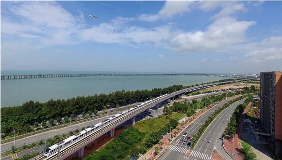 深圳市城市轨道交通11号线是国内一次建成最长、运营速度最快的城市轨道交通线路。工程起自深圳福田交通枢纽,经福田、南山、宝安三个行政区,形成高铁、城区、机场无缝衔接的轨道交通快线,线路全长51.936km,其中地下线长39.349km,高架线长11.136km,过渡段长1.451km,设车站18座,新建车辆段和停车场各1座。线路最高运营速度120km/h,首次采用6辆普通车+2辆机场专用车的八辆编组方案。工程开通运营后,缩短市中心到机场时间至30min,对加速特区一体化、增进大湾区多地合作具有重要意义。