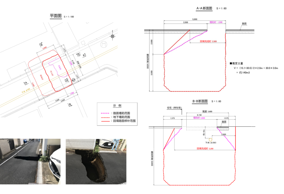 另外,还可能是因为工程中挖走了过量的泥沙,使地下发生了变形,破坏了平衡,从而导致了塌陷。因为东京外环隧道是一项在地表深处施工的大工程,所以或许会出现过度挖砂的情况。若事先知道有空洞的存在,我们可以提前采取应对措施。但如果不明确是否有空洞,我们就无从预防。今后我们不仅要对塌陷区域进行调查,还要对周边的区域进行仔细调查。”