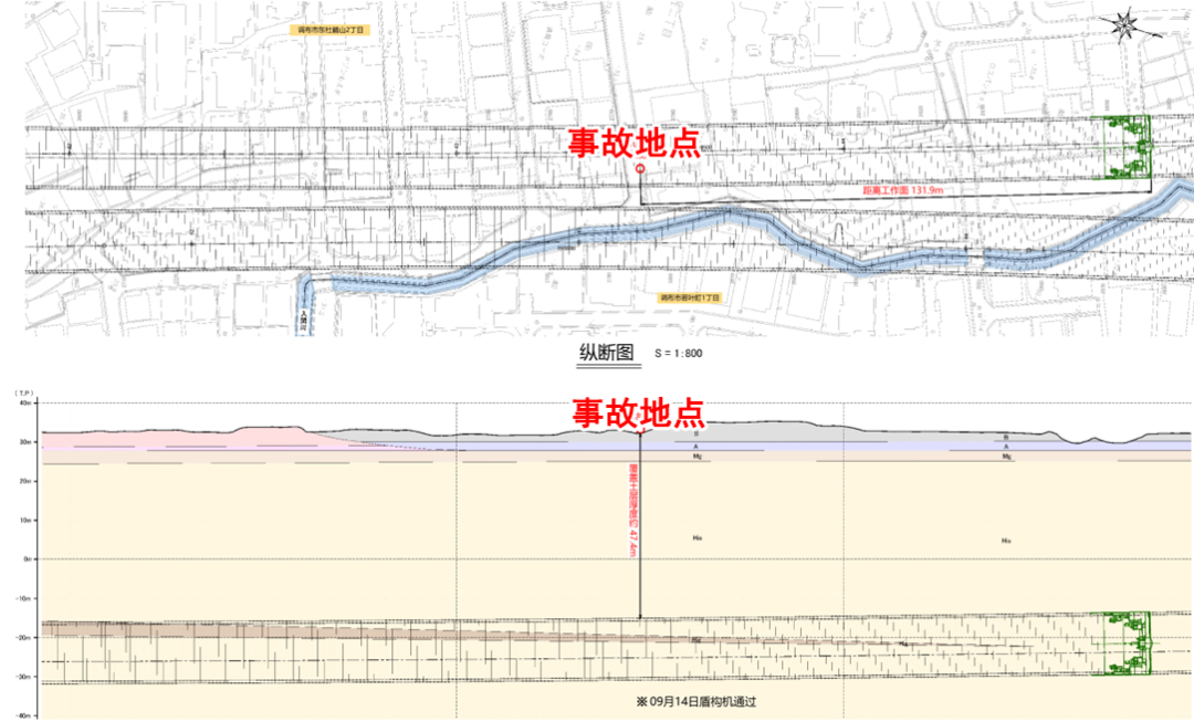因为东名北工程的施工在地下40m的深处进行,所以无需地面上居民的许可即可开始建设。9月14日,盾构机首次通过了塌陷现场的地下,与居民最初发现异常的时间大体相当。