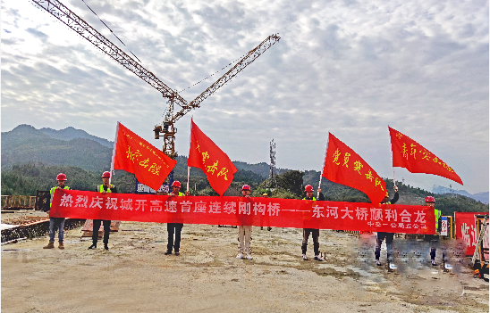 11月2日,历经900多个日夜的奋战,城开高速东河大桥顺利双幅合龙,这也是城开高速全线首座完成合龙的连续刚构桥梁。