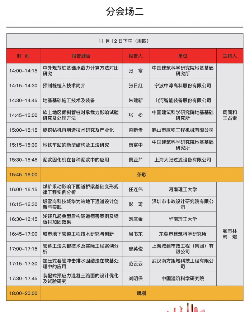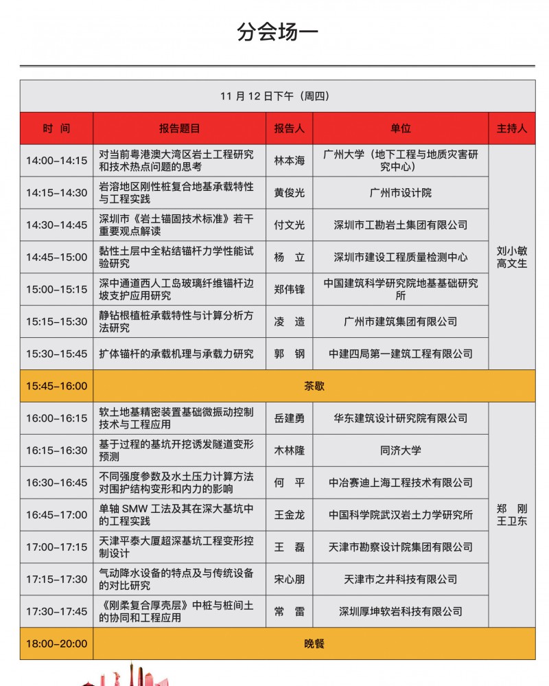 中国建筑学会地基基础学术大会(2020) 暨粤港澳大湾区智慧岩土工程学术大会将于2020年11月11日-13日在广州颐和大酒店(广州白云区同泰路颐和山庄内)召开,旨在为 广大学者和工程技术人员提供技术交流机会,针对近年来我国建筑地基基础领域理论与实 践方面的最新研究成果、发展趋势及热点难点问题进行深入探讨,为新时代的发展与建设 贡献力量。