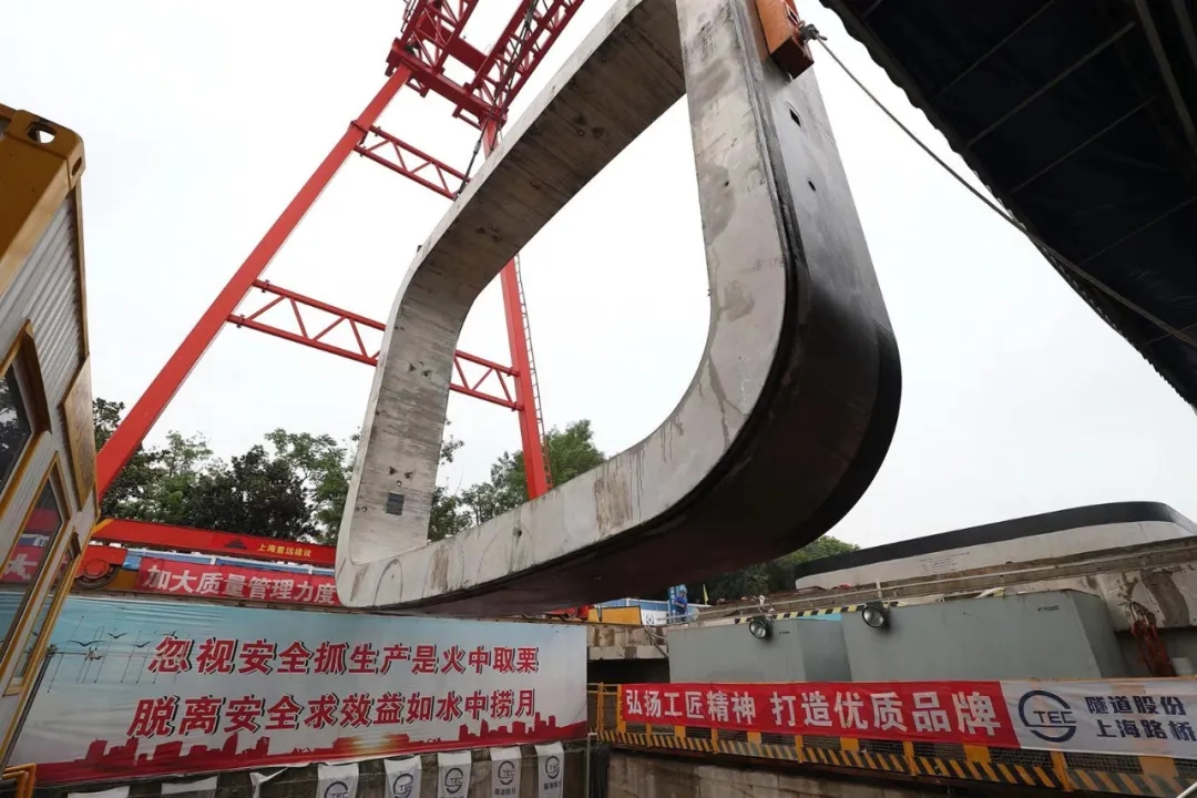 陆翔路-祁连山路贯通工程Ⅱ标矩形顶管西线“宝山先锋号”顺利到达接收井,这意味着这条世界最长距离超大断面矩形顶管工程东西线双线贯通。