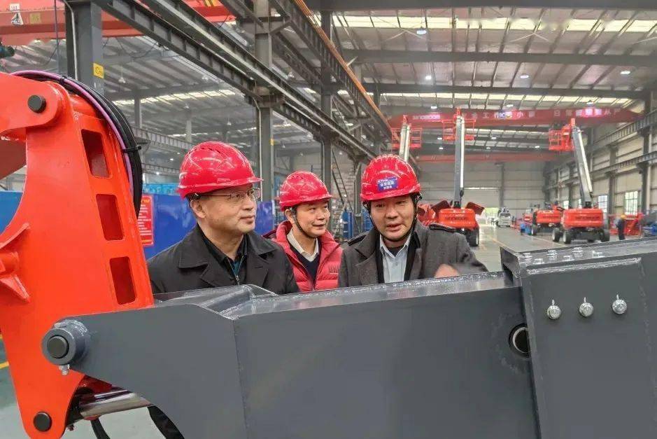 会谈结束后,在刘国良董事长陪同下,吴培国一行先后参观了星邦智能自动化臂车、剪叉生产线、结构车间和正在建设中的二期智慧工厂,对星邦智能自制臂架的工艺和质量保障水平表示了肯定。