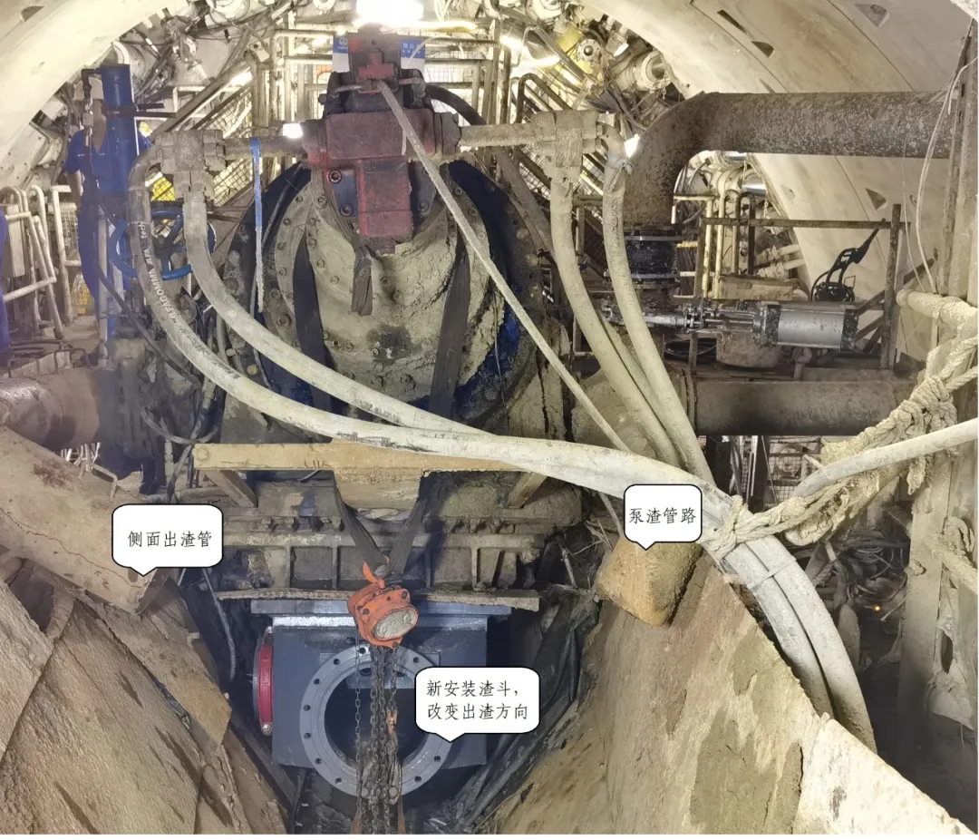 同时,隧道洞身范围底部为强度达100兆帕以上的中风化花岗岩,拱顶为全风化、中粗砂及淤泥地层,极为敏感、沉降难以控制,穿越期间掌子面工作压力超常规土压盾构的工作极限,掘进参数控制异常艰巨,项目针对超埋深、高水压地层,易出现仓内积渣、离析、卡螺机出口、喷涌渣等异常无规律的难题,通过在螺旋输送机侧墙增加侧向出渣口和泵渣装置,改变渣土方向、减少渣土流动压力;优化渣土改良系统,泡沫压力由7bar提高至11bar,对管路进行调整,并增加喷润土改良系统等措施,并结合掘进参数优化,有效地解决了该类地层下喷涌问题,并在后续的盾构掘进中取得了月累70环(126米)的可喜成绩,创九琶盾构区间进度新高。