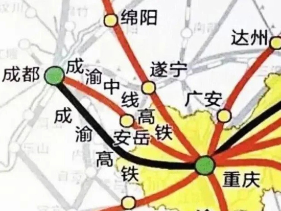 首先要说的是这几年将陆续开建的高铁和城际铁路,第1条先讲沪渝蓉高铁成都至重庆段(即之前所说的成渝中线),目前项目可研报告即将批复,四川省与重庆市正境内的先期开工段也已基本确定,线路开工在即。