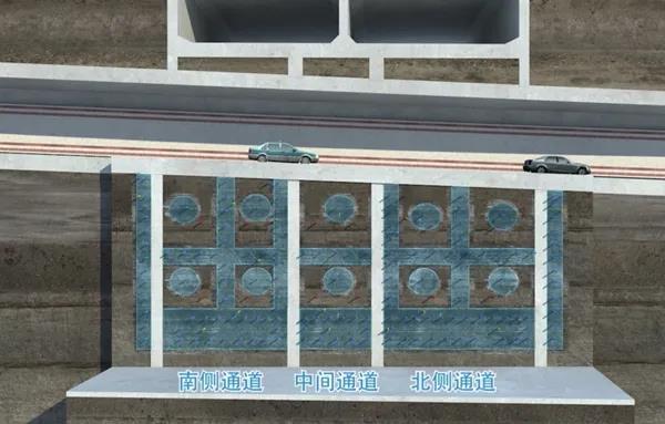 浦东大道站,下穿隧道暗挖段分为三个区域