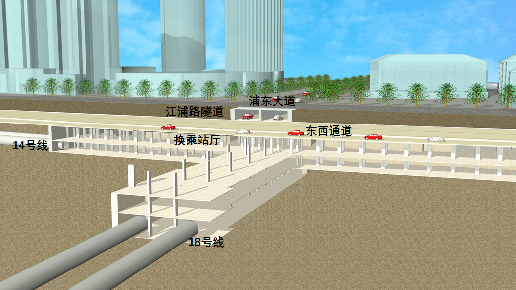 此外,地下隧道4个匝道和龙居路主出口将于今年9月全部完成,东方路风塔及罗山路管理中心、公交枢纽等节点的地下结构,计划今年8月完成,地上结构今年12月完成,装饰装修和机电安装等在明年6月完成,东西通道地下隧道计划在明年6月底竣工,地铁14号线则计划今年底完成施工。