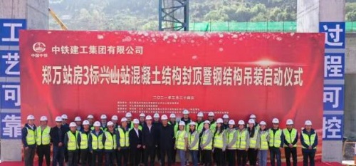3月24日,郑万高铁兴山站混凝土主体结构封顶,站房钢结构正式吊装。