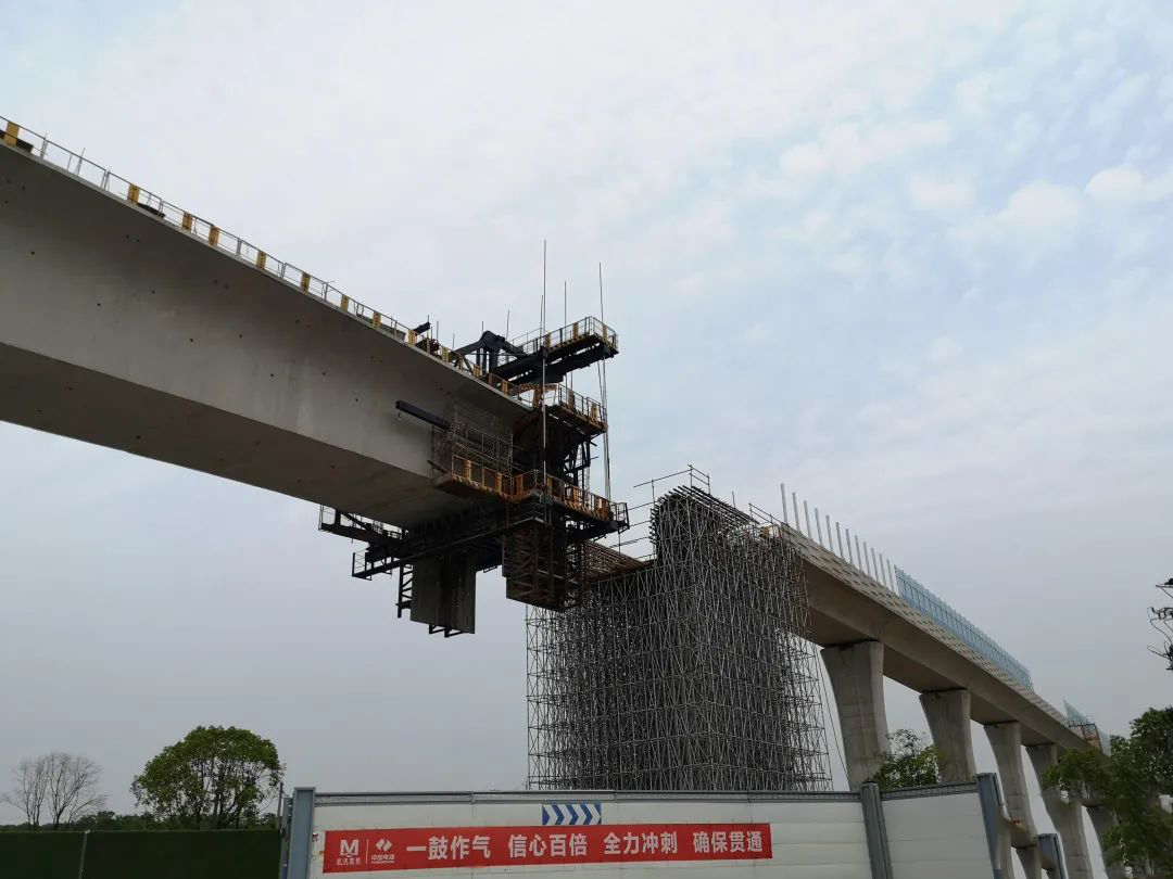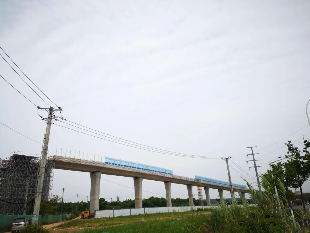 ▲全线最难的高架区间段清江站—檀军路站仅剩下一小段连续梁施工。