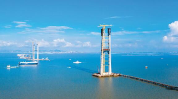深中通道是继港珠澳大桥后,粤港澳大湾区又一互联互通的重要基础设施工程,也是世界级的“桥、岛、隧、地下互通”集群工程,其中的桥即为伶仃洋大桥、中山大桥。图为5月17日,深中通道伶仃洋大桥270米主塔建设正在火热进行中,建成后将一举跃居为世界最高海上大桥。