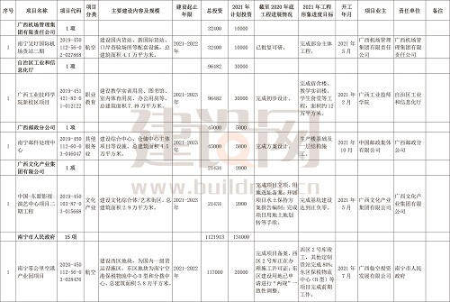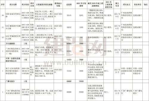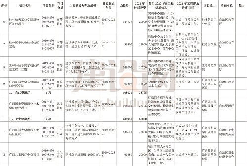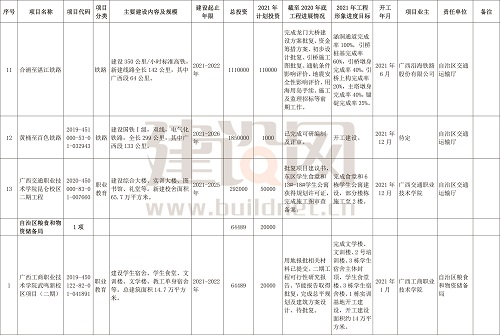 广西发改委日前发布《关于印发2021年第一批自治区层面统筹推进重大项目方案的通知》,通知指出,2021年第一批自治区层面统筹推进重大项目共1724项,总投资34965.3亿元,年度计划投资3135.9亿元,其中:新开工项目206项,总投资3659.8亿元,年度计划投资224.1亿元;续建项目926项,总投资20084.1亿元,年度计划投资2581.3亿元;竣工投产项目158项,总投资1945.3亿元,年度计划投资330.5亿元;预备项目434项,总投资9276.1亿元。