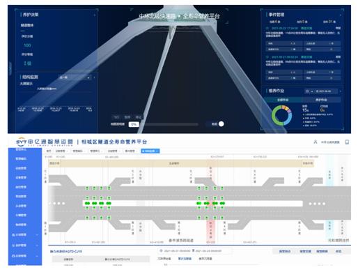 此外,公司还与上海城市运营集团联合开发了中环北线快速路全寿命周期智慧管养平台,通过收集掌握从设计、施工、养护运营各阶段的多维度业务数据,以米级单元模块为基础构建设施运维工作流程,从计划到运营再到养护维修管理各过程阶段进行精细化运维控制,实现设施设备运维、运营管理的一体化。同时利用健康监测智能化系统,对隧道结构断面变化较大处、明暗交界等结构变形缝的竖向位移和水平收敛数据进行实时监控、采集,分析结构长期变化趋势,最终做到真正意义的预养护,降低运维风险,延长设施使用寿命。
