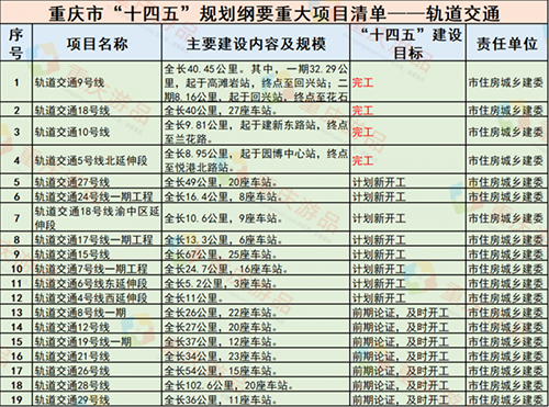 其中,重庆轨道交通作为城市的基础设施,与重庆中心城区上千万的老百姓息息相关,因此备受关注。在这个重要清单中,一共有19个与重庆轨道交通相关的项目,根据它们在“十四五”规划中的建设目标,可以分为3类。