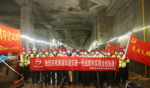 7月28日上午,随着和平桥站至友谊桥站区间最后一处钢轨接头鱼尾板螺栓拧紧,南通轨道交通1号线一期工程顺利实现全线“轨通”。